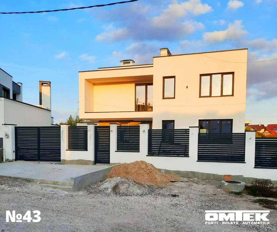Алюминиевые забор, ворота и калитки ALUTECH в Кишинёве, ул. Павел Барбалат Цвет изделий Антрацит RAL 7016, рама алюминиевая ALUTECH (ADS400) заполнение алюминиевый профиль 80х20 (ALU80) Модель забора - ADS400+ALU80 Автоматика - Came Krono 3000 (Italia) - линейные двигатели